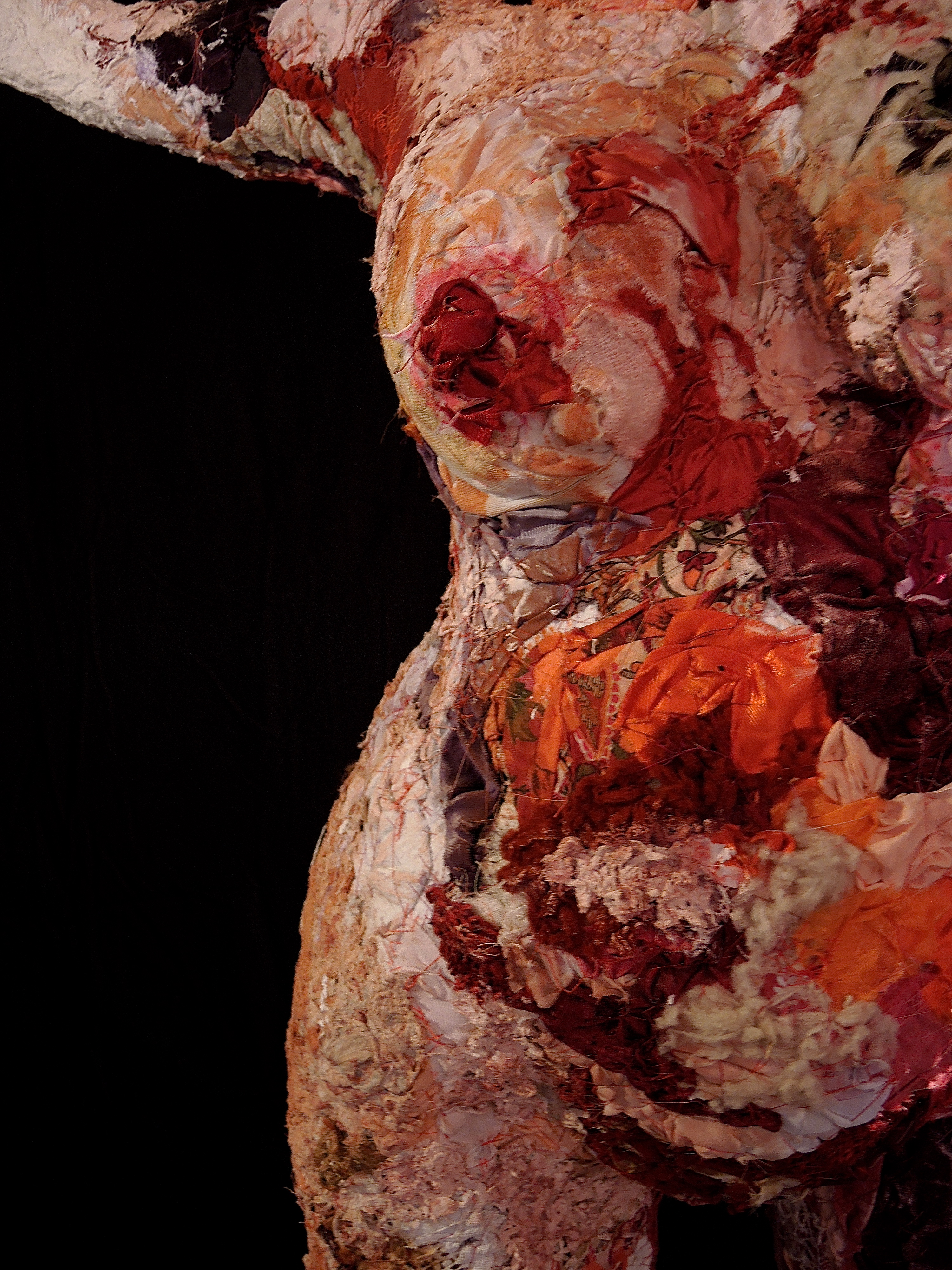 Elle porte un vrai propos sur la réalité du corps féminin : organes, viscères, flux, écoulements, allaitement, corps éprouvé par ses métamorphoses et par ce qui l’habite, la fertilité, la mort, le renouveau.